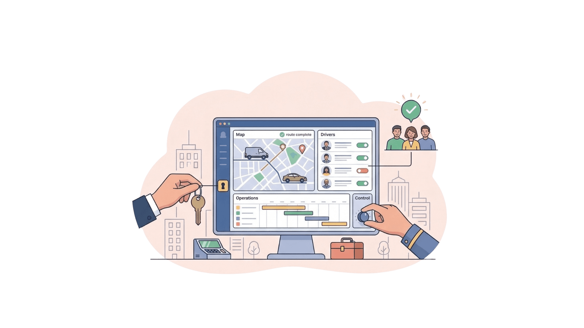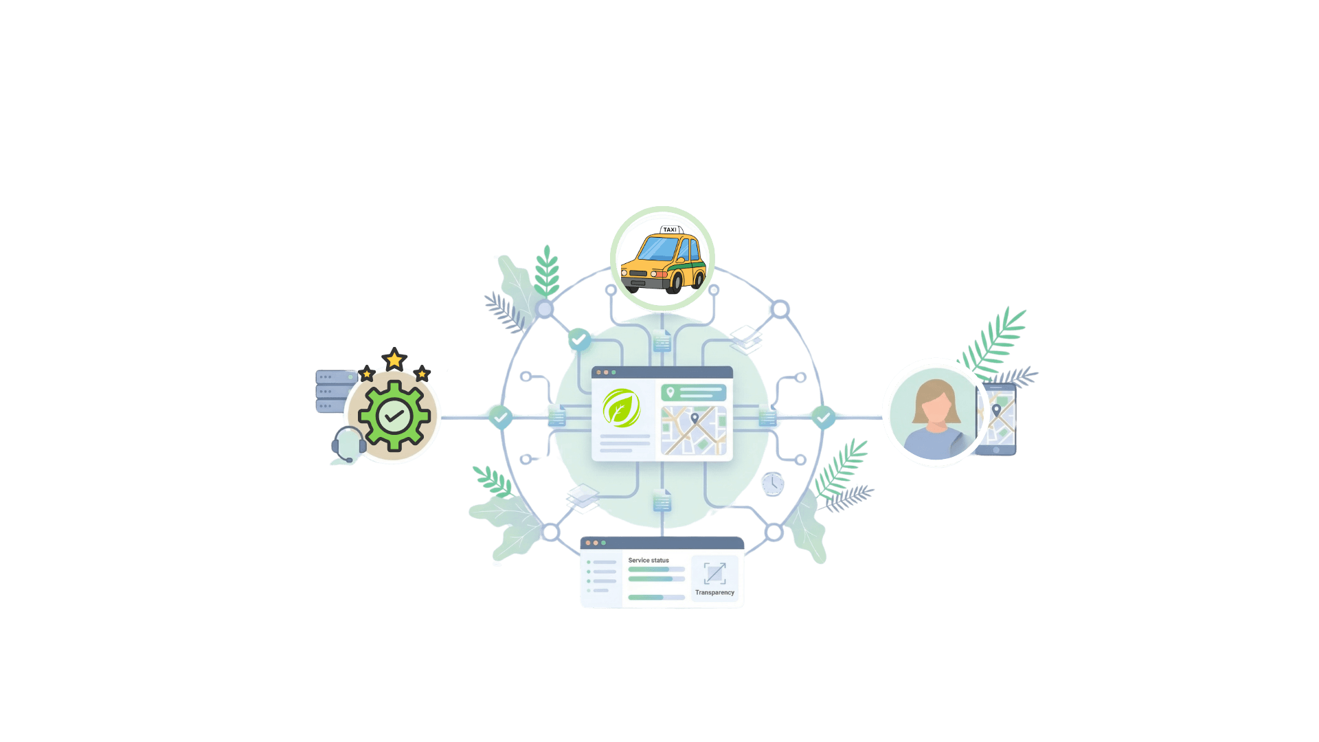 Le module relie naturellement chauffeurs, centre de contrôle et utilisateurs. Chaque acteur partage la même information en temps réel, ce qui garantit une synchronisation parfaite, une meilleure qualité de service et une transparence totale des opérations.
